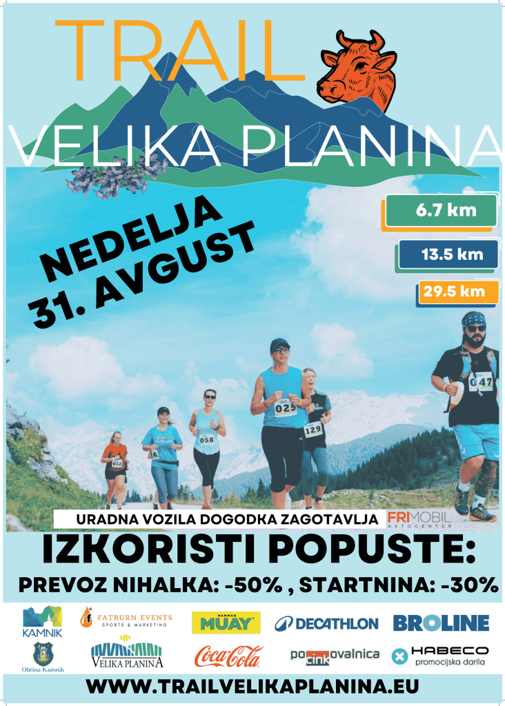 - 30% popust na startnino (če ste prijavljeni na dogodku TRAIL LJUBLJANA)